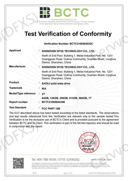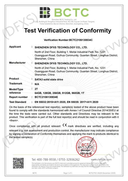 | Standaard: | FCC for SATA3 solid state drive |