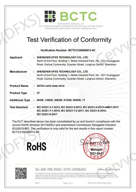 | Standaard: | RoHS for SATA3 Solid State Drive |