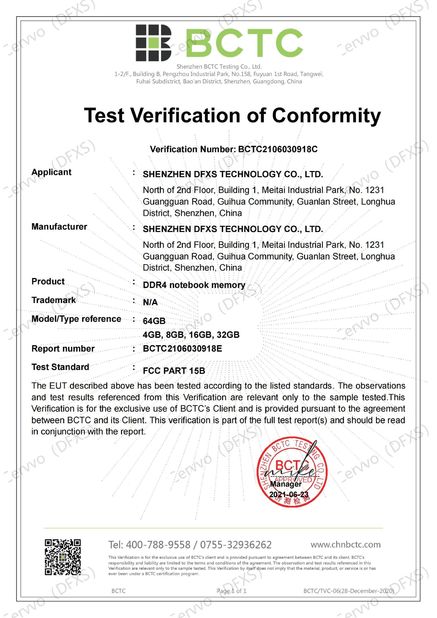 | Standaard: | FCC for DDR4 notebook memory |