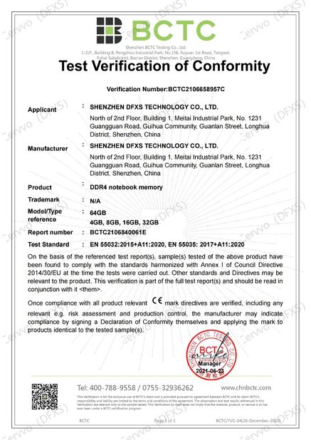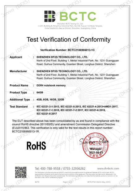 | Standaard: | RoHS for DDR4 SODIMM RAM |