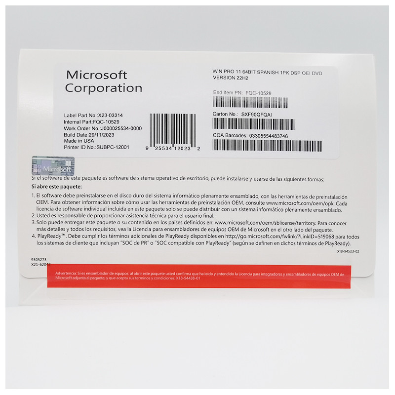 Authentieke Windows 11 Pro OEM CD Sleutel Spaans Taalpakket inbegrepen