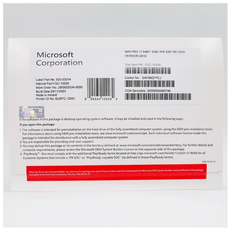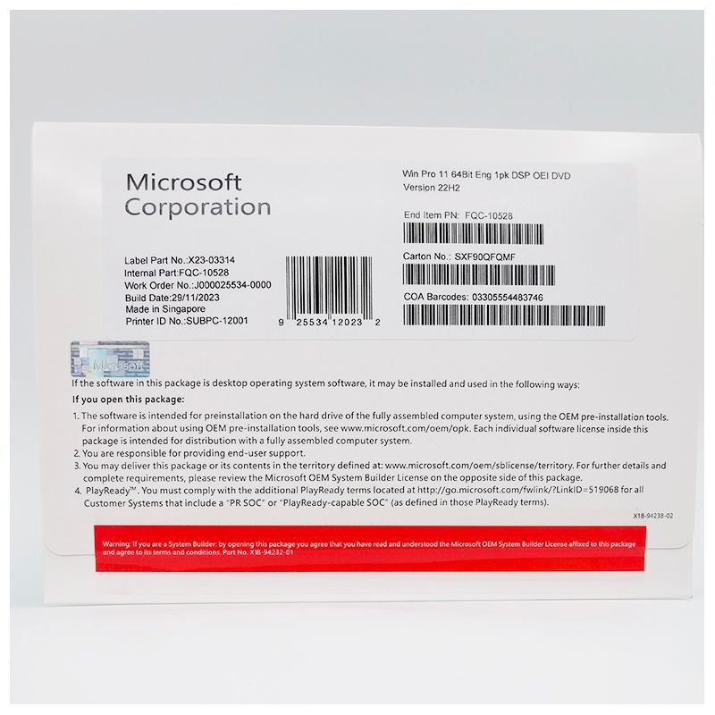 Original Win 11 Pro OEM 64 Bit DVD,Engels,Koreaans, Russisch, Frans, Duits, Italiaans Taalversie